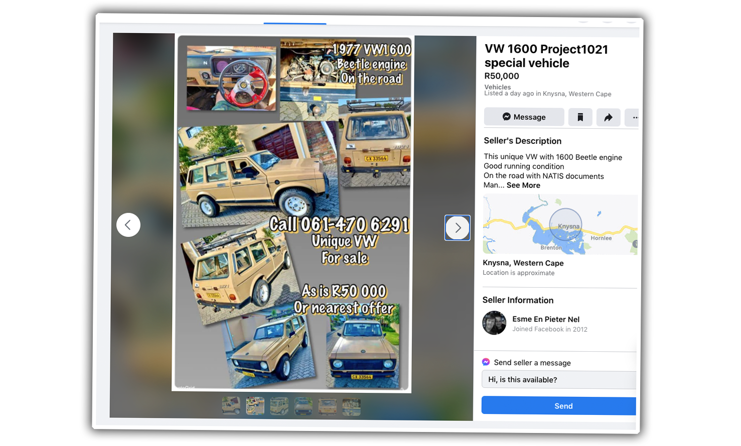I think this is an absolutely amazing car and a bit of barely-known VW history. The seller is asking R50,000 for it, which only comes to bout $3,600 American, which seems like a steal to me.