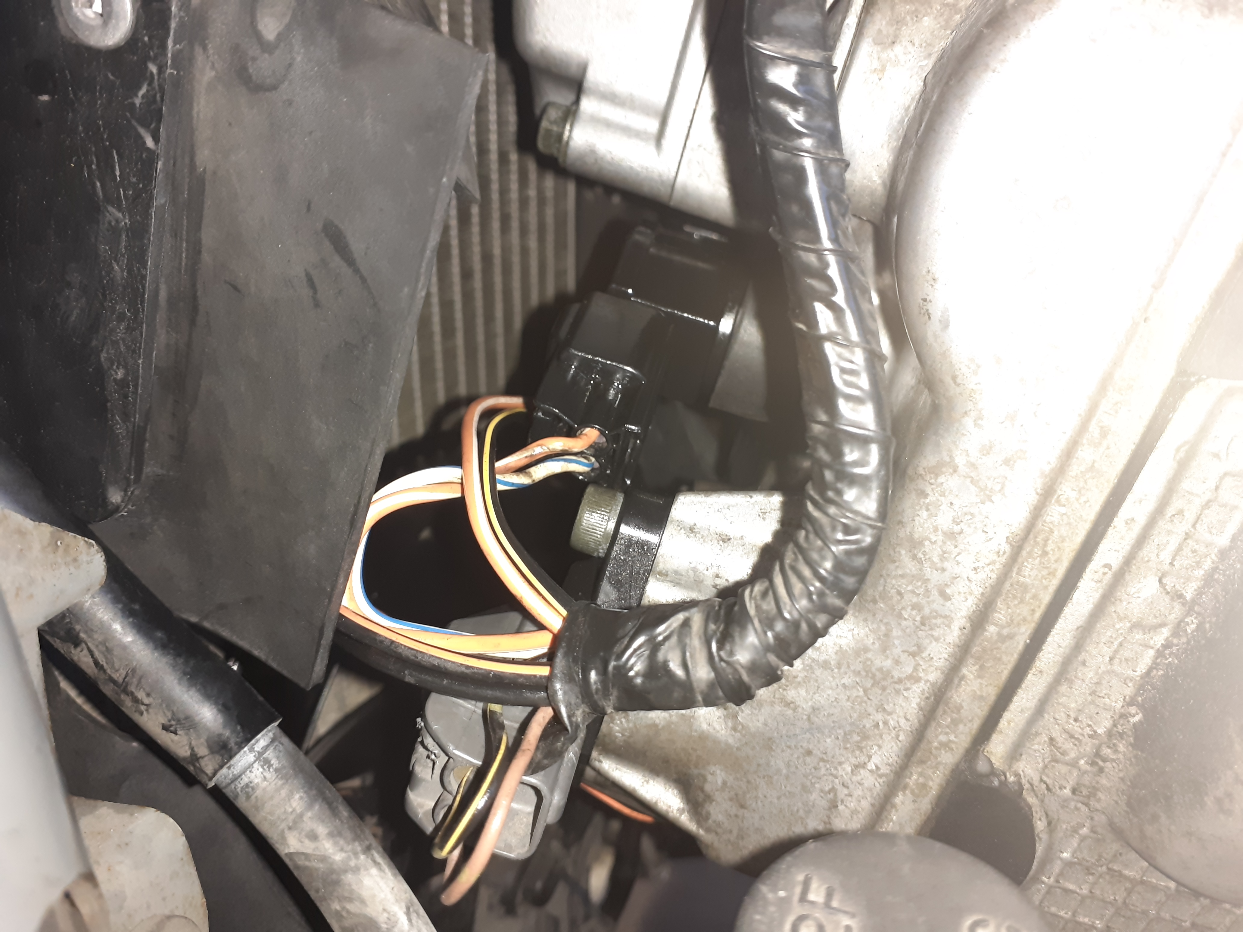In a desperate last ditch effort I began pulling back the electrical tape holding the wire harness in the engine compartment together. Everything looked fine. The wires were whole and clean enough.