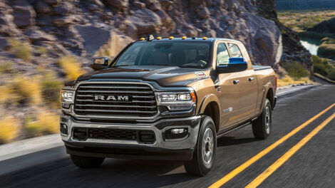 Compare all of this to the recently updated Ram Heavy Duty, which has a max towing capacity of 35,100 pounds from a 400 hp 6.7-liter Cummins diesel with 1,000 lb-ft of torque, or a less-powerful version of the same 6.7-liter diesel with 370 HP and 850 lb-ft of torque. There's also a 6.4-liter gasoline option with 410 HP and 429 lb-ft with the Ram.