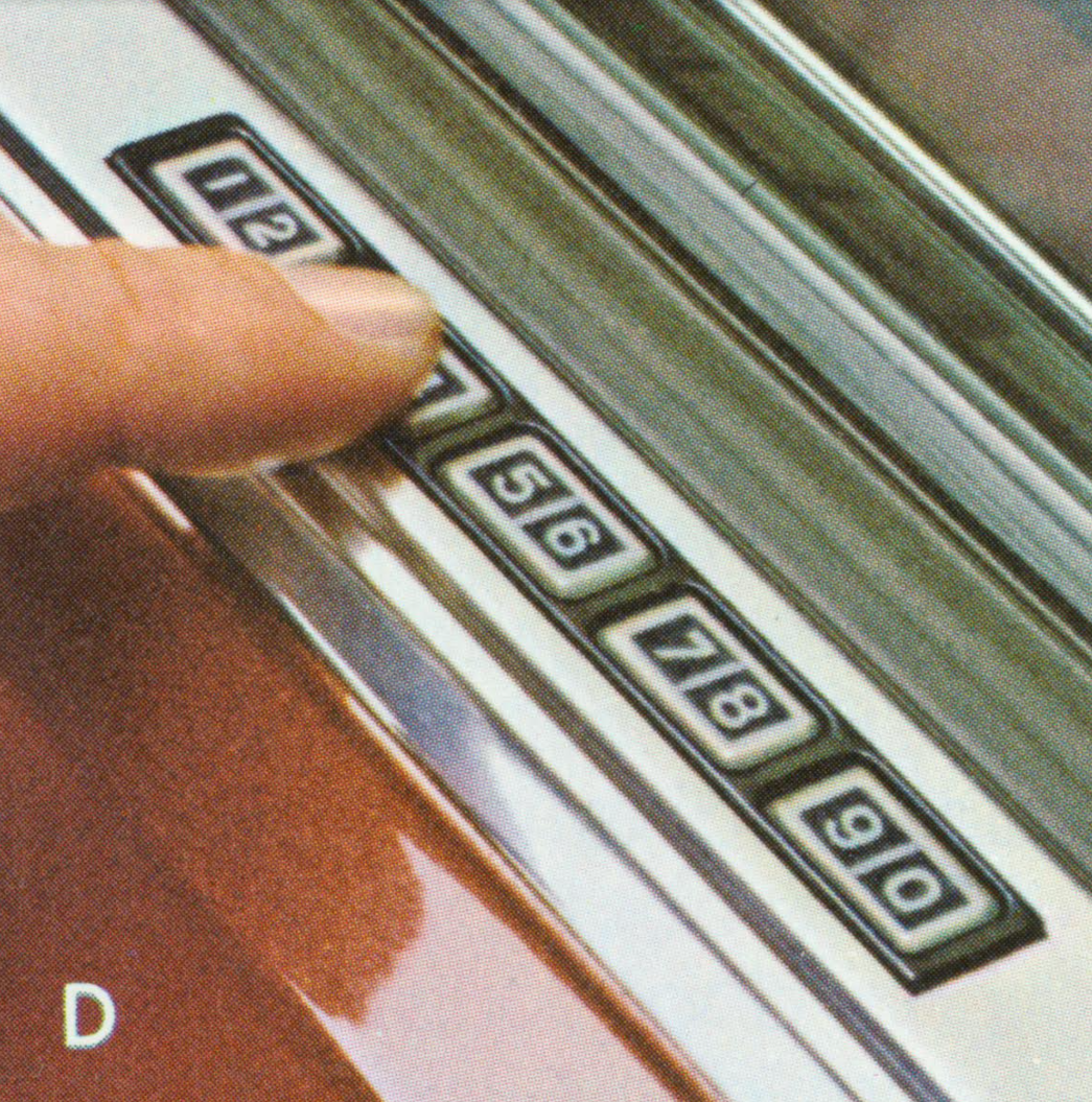 The push buttons are back-lit for nighttime use and are similar to those used on small calculators. To unlock the driver's door, one simply pushes the buttons in a pre-programmed five-digit sequence. By pressing specific buttons, the driver also can unlock the rest of the doors, lock all the doors or release the decklid."