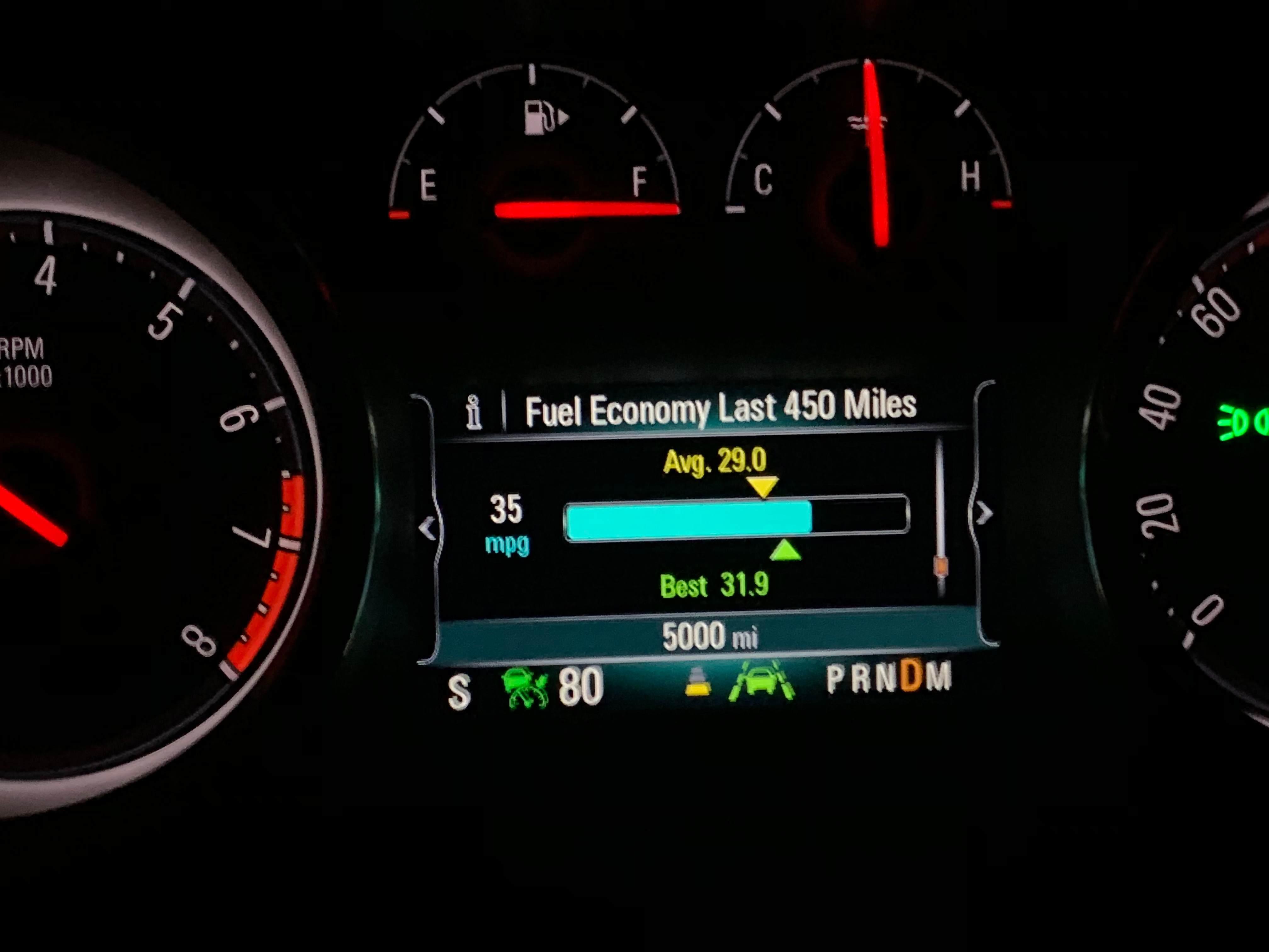 Despite being bigger, heavier, more powerful, turbocharged, and more all-wheel-drive-y than our decade-old Mazda3, the new Regal TourX gets considerably better fuel economy too. The below picture was taken after our big road trip, which was admittedly all highway miles. After 10,000 miles, the car's lifetime average has settled into the 26 mpg range.