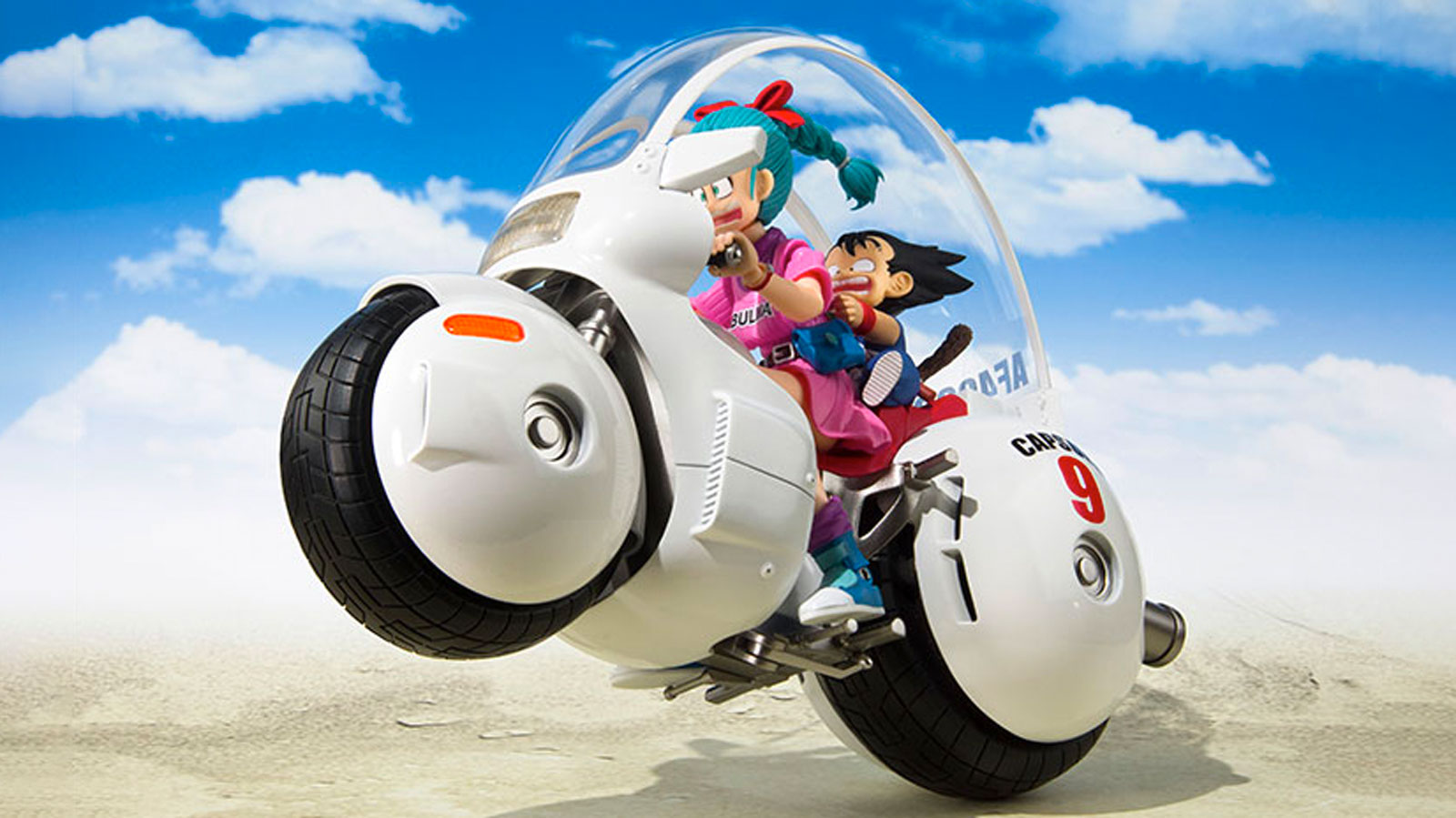 From the world of Dragon Ball comes this sci-fi bike, which is ridden by scientist Bulma. She drives three bikes through Dragon Ball, but the one pictured here is used to save her from a fighting pterodactyl.