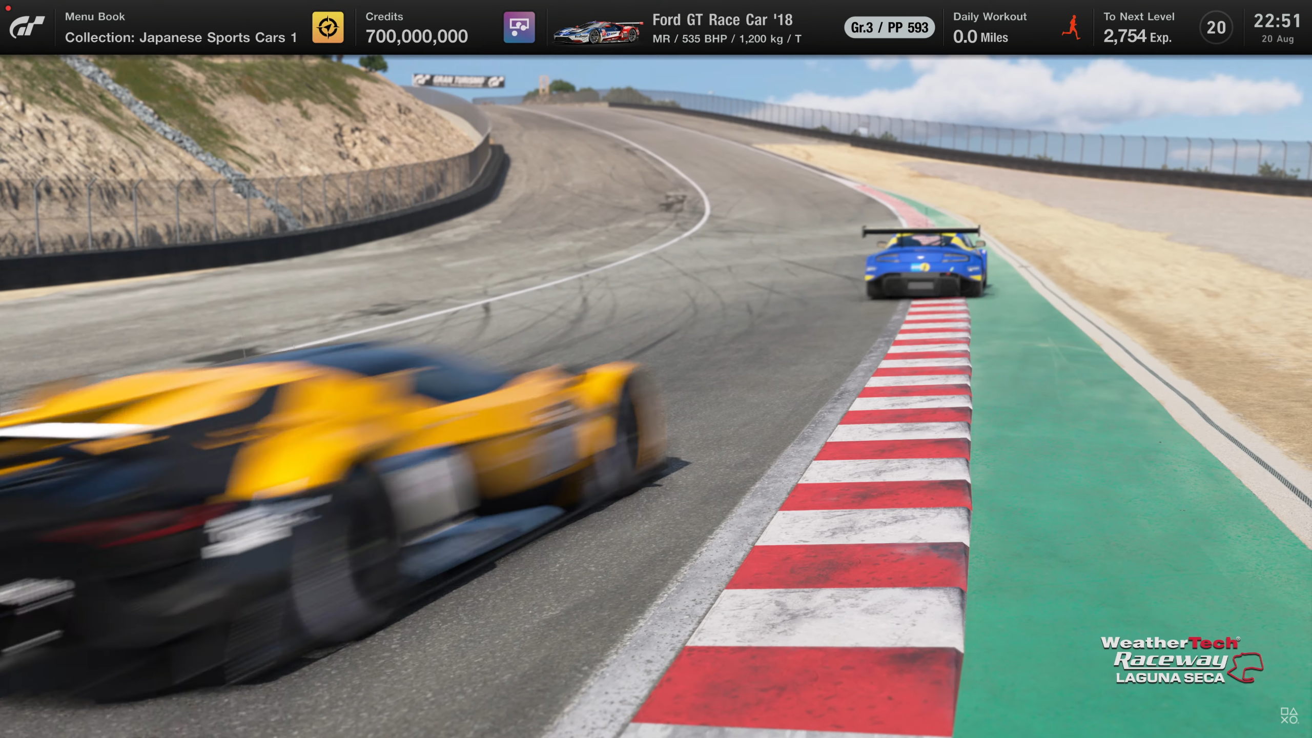 Do you see it? Nope, it's not on track — it's up there in the status bar. Of all of GT7's new cars, the most recent Ford GT race car has certainly been one of the more requested. It was missing from GT Sport, which was especially strange given that Sport was focused on race cars. Ford's GTE competitor will make it to GT7, though, and offer a much-needed addition to the Gr. 3 class.