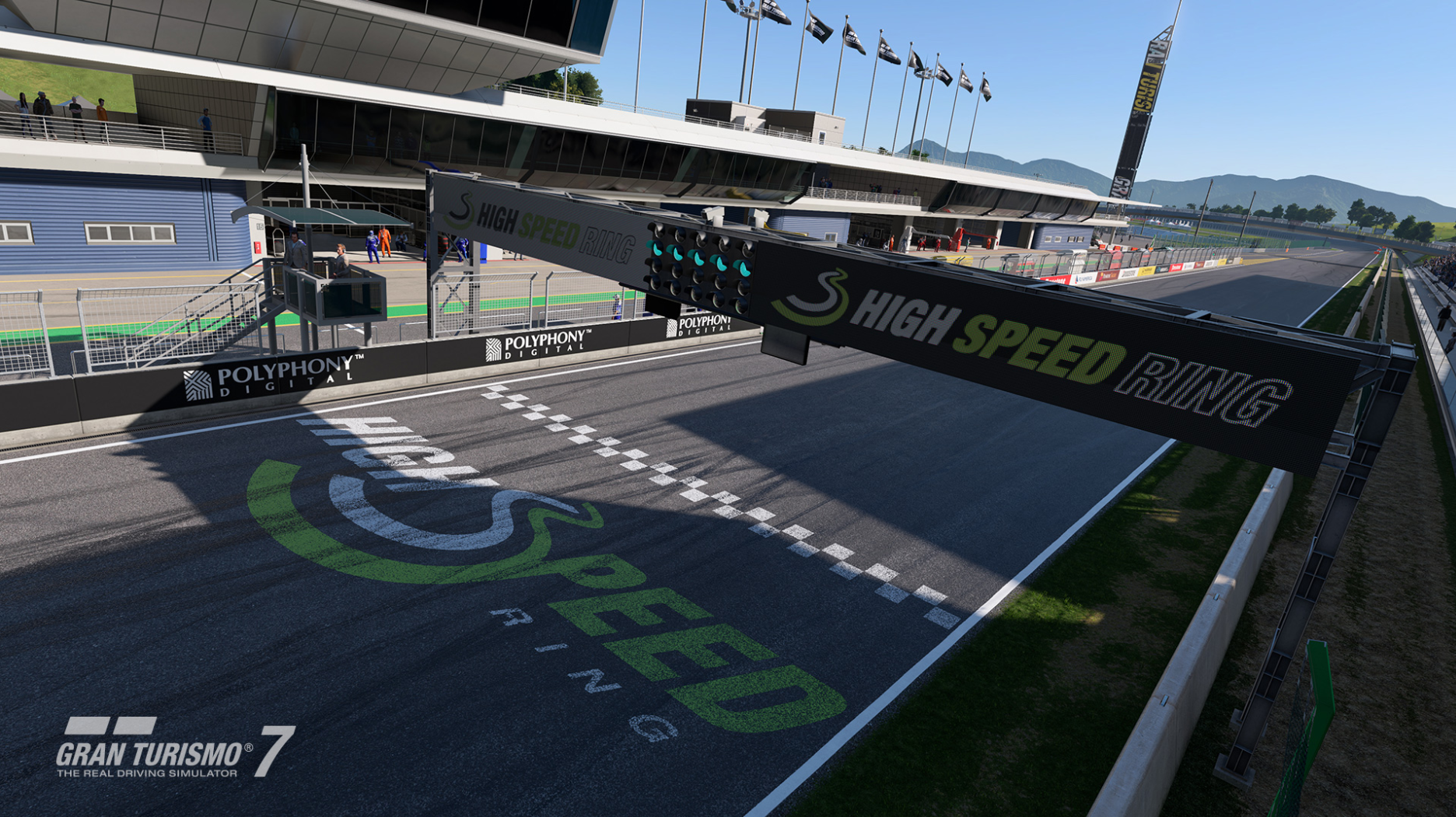 High Speed Ring joins Trial Mountain as another returning fictional circuit we haven't seen since GT6. It looks largely similar to its appearance in the PS3 iterations of the franchise, except Turn 2 appears to be considerably sharper, and there's now a dam jutting up against the lake in the middle of the track.