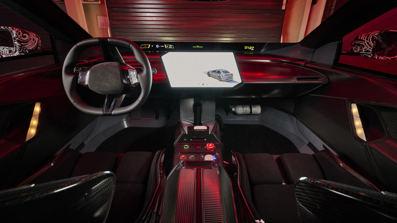 I went for a ride in the Vision Vehicle and experienced its powerful brake regen and 13,000 pound-feet of torque first-hand, and it's mighty impressive. Having seen other bonkers EVs like the Ford Supervan race Pikes Peak International Hill Climb, the Vision Vehicle is similar; tons of high-pitched EV motor whine, easily overpowered tires, and oodles of power. It's definitely a more exciting experience than you'd get in say a Toyota bZ4x, but from the back seat it still didn't live up to the time that I sat in the back of Tanner Foust's VW Passat Drift Taxi at the Optima Batteries SEMA booth in my past. Even with all-wheel drive, the Vision Vehicle struggles for traction and overpowers its road tires immediately. On the rare occasion that it hooks up, you're thrown back into your seat, but then the next corner arrives and the fight for traction begins again. It does feature some nifty wheels that light up different colors to denote when the vehicle is under acceleration, regenerative braking, and using friction brakes, but there's no word on if those will reach production.