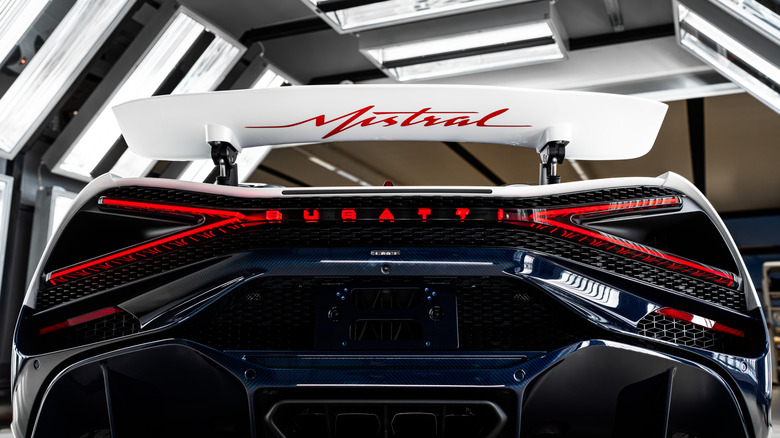 The Mistral was named after one of the eight principal winds of the Mediterranean, specifically the one that blows from souther France out to the Côte d'Azur along the coast. Bugatti certainly chose the name wisely, as it ties nicely into the brand's flowery language about the W16 era coming to a close: