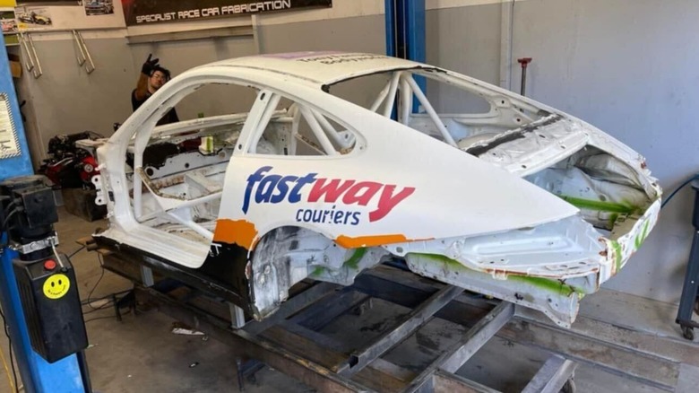 When I first heard about this project, I had to know more. I'm a sucker for low-buck fun and weird powertrain swaps, so I reached out to team boss James Dawson for more insight. Apparently the chassis is a real deal 911 GT3 Cup that competed in the Bahrain 12 Hour endurance race "when it was a Porsche." Luckily Dawson has a sense of humor, because he absolutely needed one to follow through on this fool's errand. Dawson went on to tell me that he uncovered the wrecked tub at a "Porsche wreckers" and when the shop heard about what Dawson had planned for the car, they just gave him the shell. The front was crunched and wasn't really worth anything more than scrap metal, so he was basically doing them a favor.