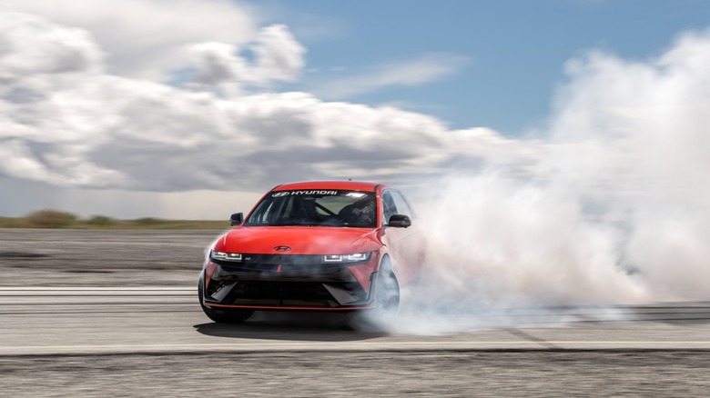 The current C8 generation of the Corvette is the best that Chevy's sports car has ever been. Sure, the C8 ruffled some feathers when it was introduced, as some thought its mid-engine setup was Corvette blasphemy. But the C8 is the real deal. Stick with the standard Corvette Stingray and you can have a V8-powered mid-engine sports car with nearly 500 horsepower and a sub-three-second 0-to-60 time for less than $80,000. It's an incredible performance bargain. In a recent MotorTrend comparison test the Corvette saw a challenge to its bang for your buck throne, and that challenge came from an unexpected place: Hyundai's electric Ioniq 5 N crossover. Even more unexpectedly, the Ioniq 5 N beat the Corvette Stingray in MotorTrend's test, which surely will upset more than a few people. We're not surprised, though — the Ioniq 5 N is the real deal, too.