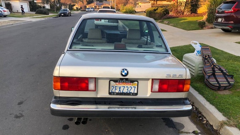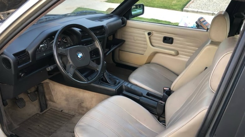 According to the ad, this 325e has always been a California car and, hence, is totally rust-free. California does have the sun, though, and a common failure point on these models is the toll that life outside can take on the dash and the upholstery on the top of the rear seat. Happily, both of those are fine on this car. There is some grunginess in the rear seat vinyl and the carpet beneath, but at least it's all intact and un-torn.