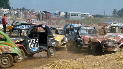 Filmed in July of 1972, Pop Cross is a short feature about a Citroën Cross race in Argenton-sur-Creuse, a commune in central France. So, what's Citroën Cross? Good question! Info seems a little thin on the ground, but from what I can tell, Citroën Cross was a kind of grassroots rallycross racing that was popular in Europe in the '70s and '80s. The cars were mostly stripped-down but otherwise stock Citroën 2CVs and Dyanes, and the whole thing has real powerful Folk Race or even early 24-Hours of Lemons energy.