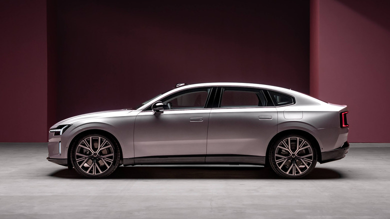 Following teasers that talked about the new Volvo ES90's computing power and fast-charging capabilities, the Swedish automaker has fully unveiled its flagship electric sedan, which takes the place of the S90 in the lineup. It looks pretty much as we expected — a familiar Volvo sedan shape with styling cues from the EX30 and EX90 crossovers — but underneath its skin it's radical in a way we haven't seen from a Volvo before. The company has played with high-performance models, like the V60 Polestar wagon and the EX90's Performance trim, but the ES90 takes it another step further by having way more power than any Volvo before it.
