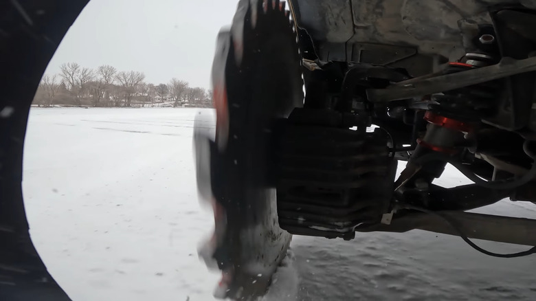 Thankfully, these wheels weren't put on for a long cruise down the highway. Instead, they were installed to rip it on an ice cap. Or a frozen lake, which is probably the next best thing in the Contiguous United States.