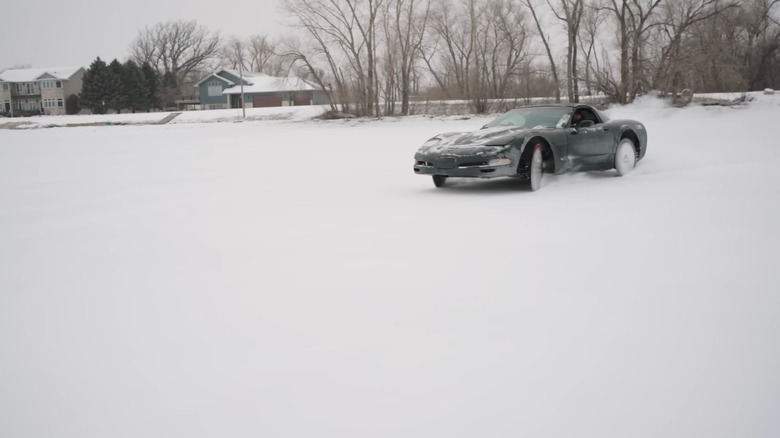 With a little push from a snowplow, the sawblade Corvette dances over the ice, kicking up enormous snowy rooster tails in the process. Heck, it even does a fair job at turning – but maybe don't take this on a frozen rally stage anytime soon.