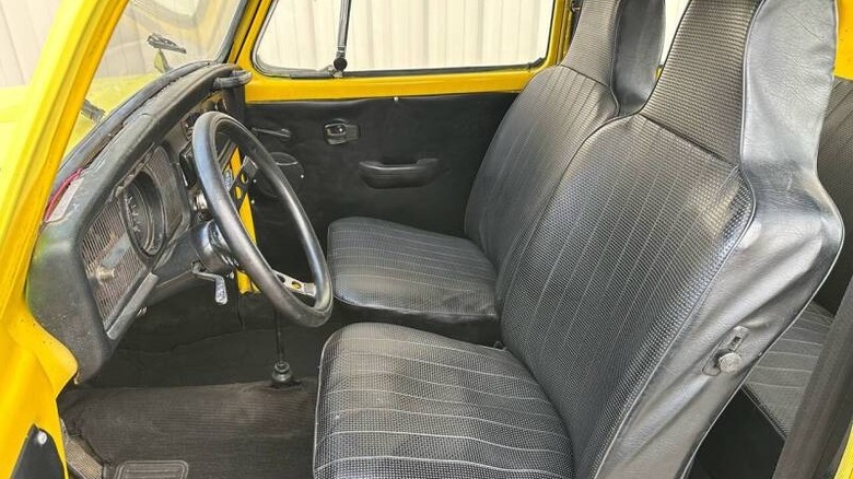 Based on the ad's pictures, the cabin is basic Bug. The only notable difference is the addition of a heater box on the parcel tray behind the rear seat. One major upside of the water-cooled V8 replacing the VW's puny air-cooled pancake four is that the Ford mill probably puts out enough heat to turn the VW's cabin into a sauna on even the coldest of days.