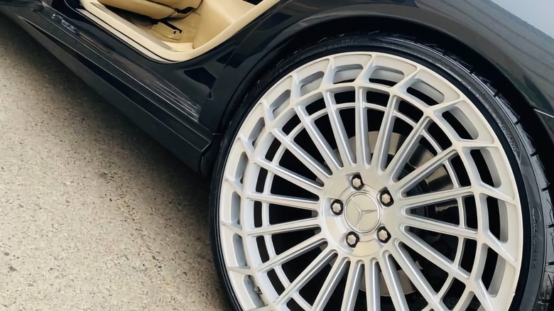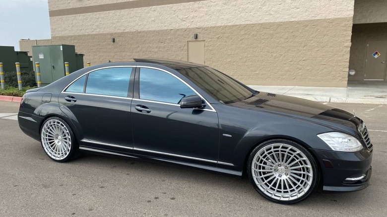 There's some bling to be had here too. The seller has fitted the car with Mercedes star-capped 22-inch wheels—10-inch in the front and 11 in the rear—and combined with the ultra-low profile tires those give the car a very distinctive look. Will they be for everybody? Probably not, but if that's the only issue with the car, it's an easy one to fix.