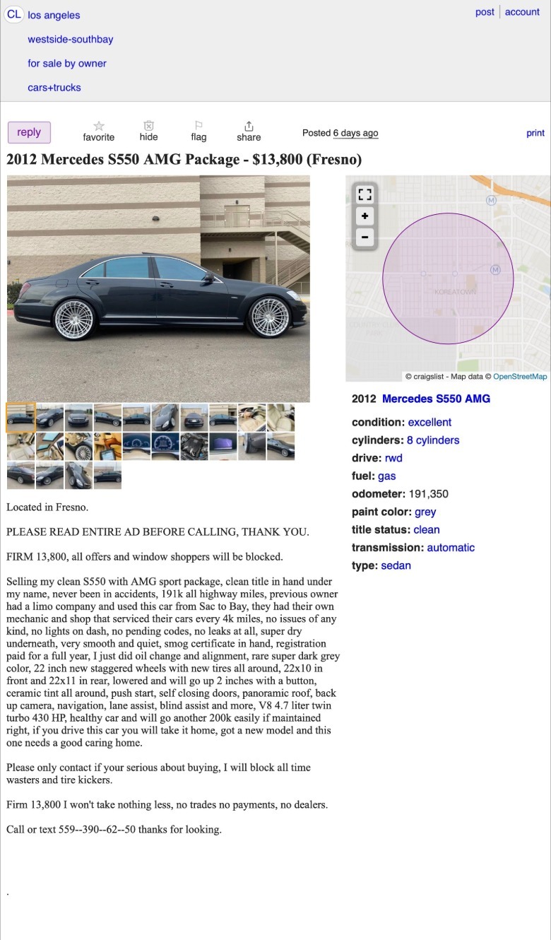Los Angeles, California, Craigslist, or go here if the ad disappears.