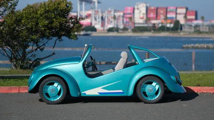 Custom cars can and should be indicative of the time period in which they were built. The pure optimism and over-the-top energy held in this custom 1971 Volkswagen Bug is pure early-1990s, like a key bump at a music producer's house party. This real teal machine looks like a toy car from every angle, and has the stance to match it. If my mother had presented me with a 1:12 scale radio-controlled version of this car in 1993 I would have gone out of my mind with joyous enthusiasm. In an era where every new car is designed to be as aggressive as possible, drive something that will make people smile. This car is the antidote to everything wrong in modern society. Let the sea breeze blow through your hair as you gently waft down a beach-side highway. You've had a rough day, you deserve it.