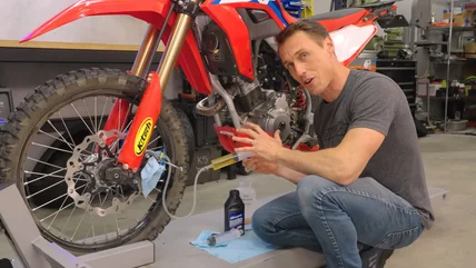 Reverse-bleeding is simply enough: Open your master cylinder, empty it of fluid, fill a syringe with fresh fluid, connect it to your caliper's bleed screw with a length of hose, and slowly but firmly press fluid through until your lever or pedal is firm. Once your lines are full, you can do a bit of traditional bleeding for the last few stubborn bubbles, but it won't require nearly the time or effort that traditionally bleeding the full system would need. Reverse-bleeding may only get you 90 percent of the way there, but it'll get you to that 90 percent mark a hell of a lot faster.
