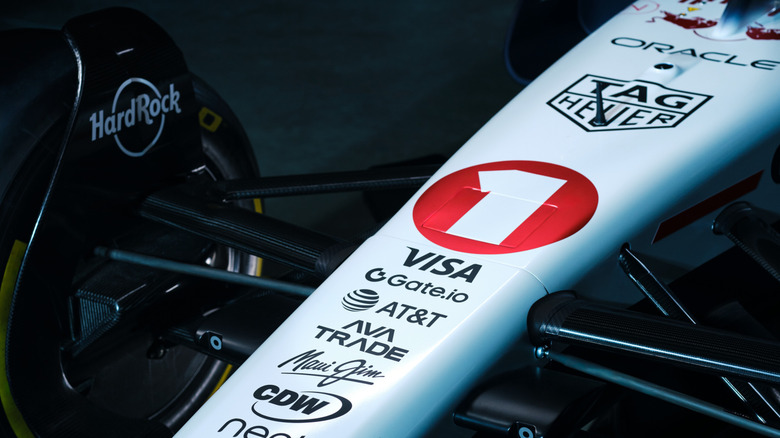 Red Bull's translation of the RA272 livery features a similar shade of white, differing only for weight reasons. The red sun remains at the front of the car, used as a number plate for Max Verstappen's No. 1 and Tsunoda's No. 22. The traditional red-and-yellow Red Bull logo is now metallic red on the engine cover. The modern Honda wordmark has also been swapped for the sans-serif wordmark used on the 1960s F1 car. The nosecone also features two small but meaningful additions: an era-accurate Honda logo and a decal commemorating the RA272's win.
