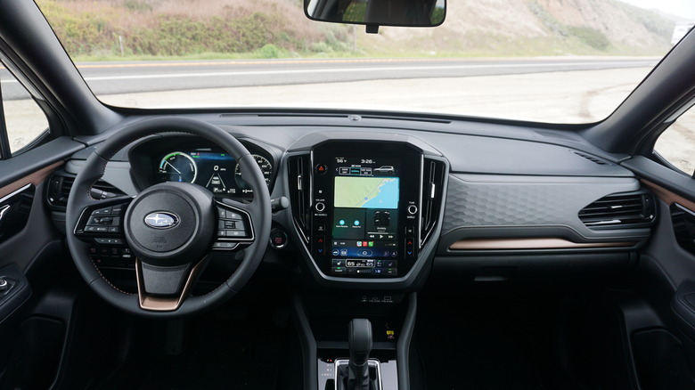 Regardless of the trim level you choose, you still get niceties like Subaru's EyeSight driver-assist tech (among other safety features), a 10-way power driver's seat, heated front seats, an 11.6-inch vertical infotainment screen with wireless Apple CarPlay and Android Auto, a 12.3-inch gauge cluster screen you can throw your map into, LED headlights and foglights, dual-zone climate control, a panoramic-ish sunroof, 18-inch wheels (19s are optional on some trims), roof rails, and Dual-Mode X-Mode with hill-descent control, among a slew of other features.