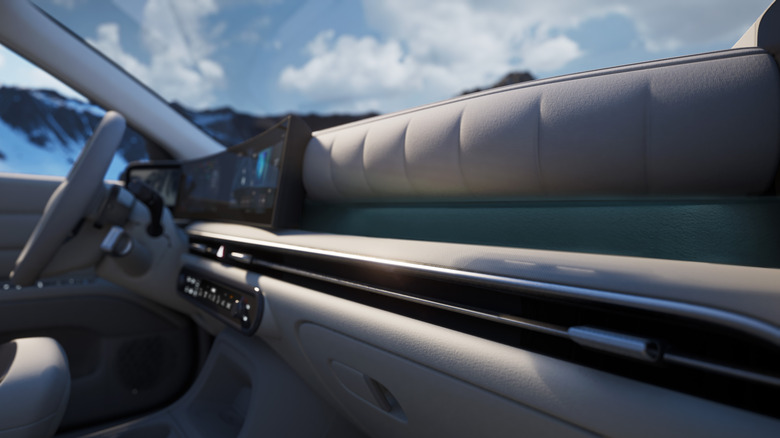 On the inside the second-gen Nexo looks more similar to other new Hyundais like the Palisade, but it still has some unique design elements. Though its wheelbase is the same, the new model is longer, wider and taller than the outgoing Nexo, and it has more passenger and cargo space as a result. Hyundai says the cargo area can fit four golf bags, and there's some sort of customizable platform for accessories. The rear doors open wider than before, too.