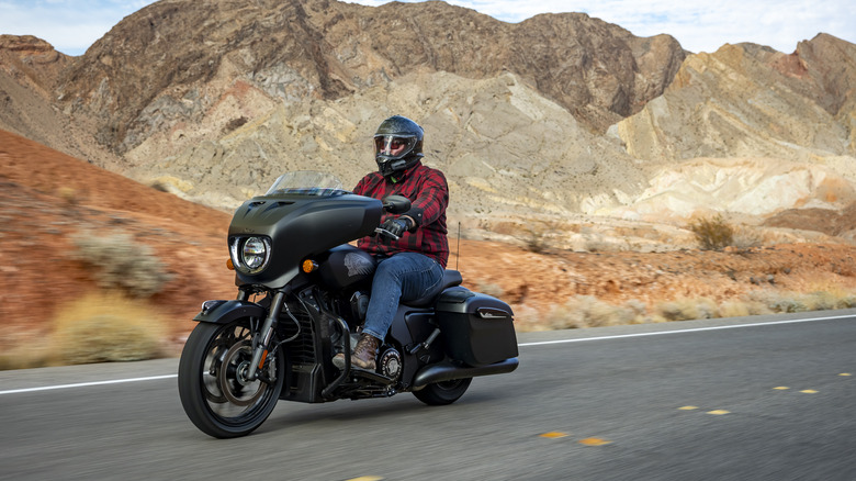 All of the bikes you see me riding in these photos are higher-spec models with the optional larger 112ci PowerPlus V-twin. The Chieftain tips the scales at 842 pounds ready to ride, while a full-fat Challenger with a 400w stereo system weighs 860. That engine makes 126 horsepower and 133 pound-feet of torque unleashed with a chunky handlebar throttle twist, however, so you aren't exactly pining for more power or less bike. They're not exactly corner carvers, but these machines are competent enough to be engaging when the roads aren't perfectly arrow straight. A fast curvy desert highway, in fact, is where these steel horses were born to run. These bikes are the two-wheeled embodiment of the American west.