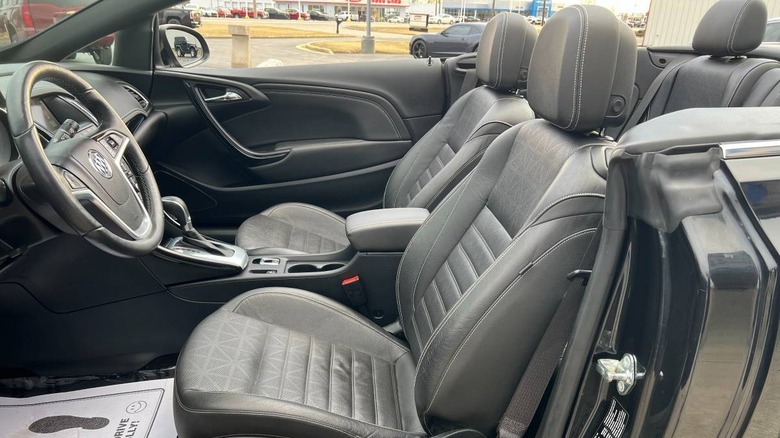That's not to say that it wouldn't be reasonably comfortable and fairly fun to drive. The top does go down, after all, and there are plenty of bells and whistles in the cabin to play with, including a modest-sized center stack screen that offers navigation and satellite radio. Other features on this "like new" Buick include cruise and automatic climate control, along with power windows, locks, and top.