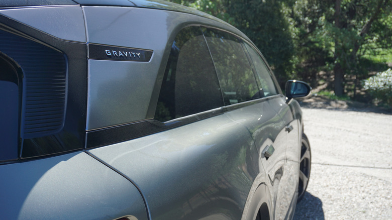 The outside of the Gravity is far more conventional-looking than the inside. That's not a bad thing at all, but you can absolutely see where the Air's DNA comes into play. It keeps the familiar lightbars and the front and rear as well as an optional platinum-colored roof (the Stealth package that blacks out the roof, exterior trim and wheels is standard). Other details like the wheel and bumper designs are clear Lucid hallmarks.