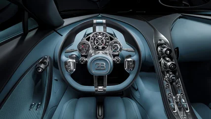 Even just restricting myself to steering wheels from the past few years there would be a lot to choose from, like the DS N°8's headcrab-shaped wheel or one of the many strange two-spoke wheels from companies like Genesis and BMW. I just have to give it to the Bugatti Tourbillon, though, especially seeing it in person last summer. The Tourbillon has an absolutely wild fixed-hub steering wheel, with a chronograph-like gauge cluster attached to the hub and a small airbag cover. Only the thin rim of the wheel actually twists around, and the controls at the 9 and 3 marks are wonderfully designed. And notice how the spokes of the wheel are at 12 and 6? The whole thing looks great, I think, especially in a good two-tone color scheme. When you're buying a $4 million hypercar with a hybrid V16 engine, this is the kind of bananas steering wheel I want to see.