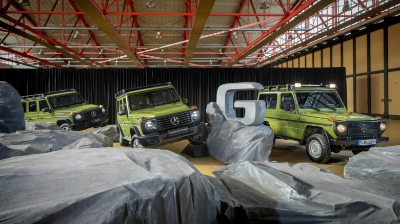 Included on this special edition are bits from the Professional package like the mud flaps and all-terrain tires. If you get yours in Agave Green, Mercedes also gives it the roof rack and rear ladder from the Professional pack, and, in Europe, rad headlight guards. Like the 500,000th car, the Edition 1980s has 18-inch wheels with the classic five-spoke star design that Mercedes fitted to countless G-Wagens over the decades.