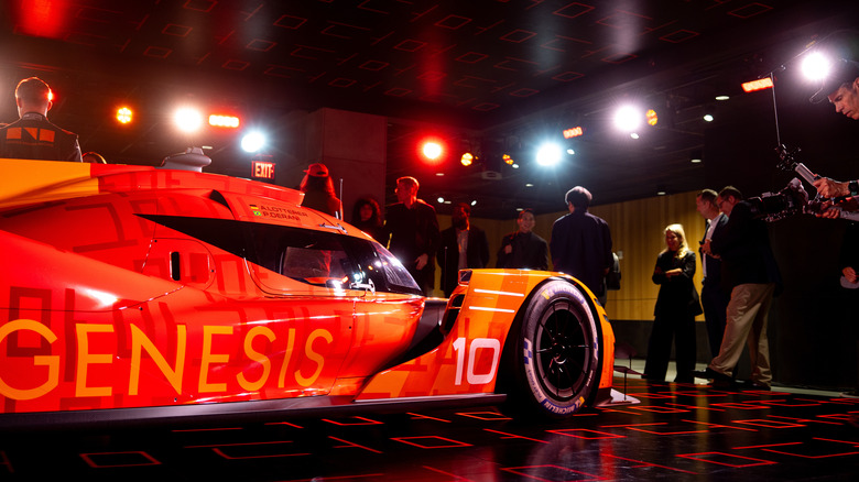 We've known for a while now that Genesis, in addition to hunting for the apex of luxury, wants to dive headlong into the world of racing. Specifically, the company has its sights set on an overall win at Le Mans, and it's drip-fed us information about the chassis that it hopes will make that dream a reality: The GMR-001, for Genesis Magma Racing. But while we've seen renderings and scale models, Genesis hasn't shown the actual full-scale GMR-001 in the flesh — at least, not until last night.