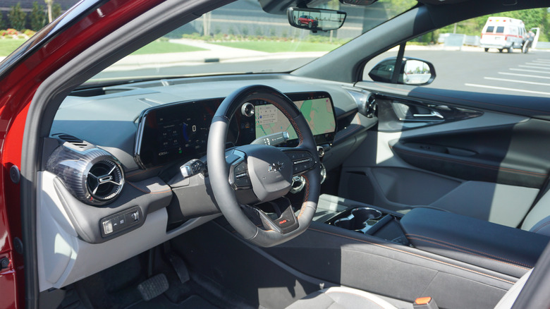 Still, the overall design of the interior is at least somewhat interesting, although its driver-centric cockpit shape presents some problems. It's extremely similar to what is found in the standard Blazer EV with its 11-inch digital gauge cluster, 17.7-inch infotainment display (which doesn't have Apple CarPlay or Android Auto) and massive air vents. The volume button is also quite far away from you if you're the passenger. In reality, the entire center display is tilted too far toward the driver to be super useful for the passenger. This is fine on an all-out performance car, but it's annoying as hell in a family crossover.