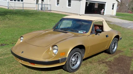 The car looks to be in suitably nice condition for its age and those few miles/kilometers. The gold paint looks solid, and, at first glance, so, too, does the fiberglass bodywork underneath. The convertible top also appears to be in good condition and is manual, so there are no electrics or hydraulics about which to worry.
