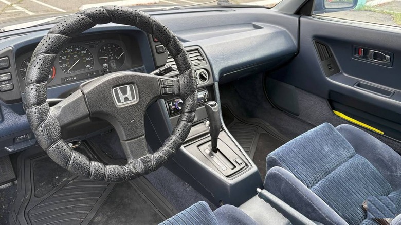 On this Prelude, the system is completely mechanical, with two separate steering racks connected by a dedicated shaft running from front to back in between them. Wildly innovative, the system allows for the rear wheels to turn in tandem with the fronts when small inputs to the steering wheel are made and then in opposite directions when greater turns are called upon. On this car, that all seems to work as it should, as does, according to the ad, the old-school A/C and the fuel-injected DOHC B20A5 2.0 engine. When new, that inline four offered up 135 horsepower at a heady 6,200 rpm and 127 lb-ft of torque at a slightly less frenetic 4,000 spins.
