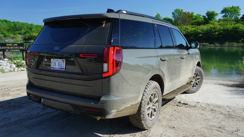 It doesn't just talk the talk either. The Expedition Tremor can walk the walk when you're off-road. We were able to go through some pretty demanding trails at the Interlake State Recreation Area in rural Indiana, and the Tremor did extremely well. If you're in the right mode and give it enough gas, it's pretty damn impossible to get this thing stuck, even in the gnarliest terrain. My only real issues with it were the aforementioned steering problems (you're turning it a lot) and the simple fact it was really freaking big. Unless you're comfy giving your Expedition Tremor pinstripes courtesy of the trees around you, look for more wide-open trails.