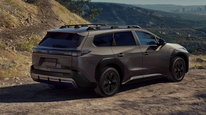 Toyota says the Woodland "delivers mid-size SUV utility" with almost six extra inches of length (most of which is cargo space) and 8.3 inches of ground clearance, an impressive quarter-inch more than the standard model. Toyota went to all the trouble of re-designing the suspension for a modest 0.1-inch lift, and the rest of the added clearance seems to be added with optional all-terrain tires. Most of the difference between the regular bZ and the bZ Woodland is visual, as the Woodland has standard roof rails, black plastic fender cladding and different styling and taillights for the longer rear end. The new bZ variant is capable of towing up to 3,500 pounds.