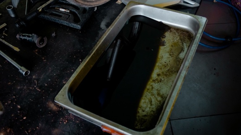 While cleaning up spilled oil stains is possible, preventing spills and leaks in the first place is the smarter route. Having the right tools when doing your own oil changes at home makes all the difference. Start with a deep, wide oil catch pan, a funnel with a long neck, and plenty of absorbent shop towels. Lay down a barrier like a tarp, piece of cardboard, or even a strip of linoleum before starting to catch any stray drips.