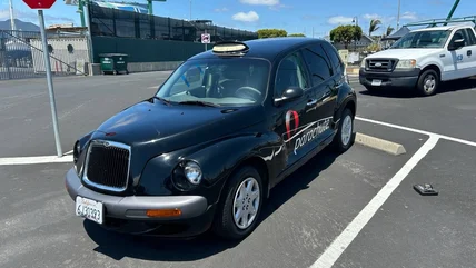 This is one of 20 PT Cruisers that were converted to London Taxi lookalikes for a San Francisco-based boutique package delivery company called Parachute. According to an SFGate article from the time, these cost around $30,000 each, a total that included the car's $16,000 drive-off cost, something like $3,000 to $4,000 to do the conversion, and then about $10,000 more to fit them with a GPS tracker and wireless modem for driver communications. This was, after all, the pre-iPhone era. Parachute also cut a deal with the maker of the actual London Cab, Manganese Bronze Holding Plc, to pay the London-based company $2 million for the rights to use the cab's signature look