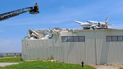 With this year's run of fatal commercial plane crashes, including last week's Air India Boeing 787 disaster, there's a small comfort in knowing that people are still walking away relatively unscathed from truly absurd general aviation incidents. First responders pulled two people out of a plane that crashed on a hangar's roof at a small public airport outside Kansas City on Monday. The 73-year-old pilot and his 30-year-old female passenger were taken to a nearby hospital with minor injuries. Thankfully, no one inside the hangar was injured by the plane that dug a huge hole in the structure.