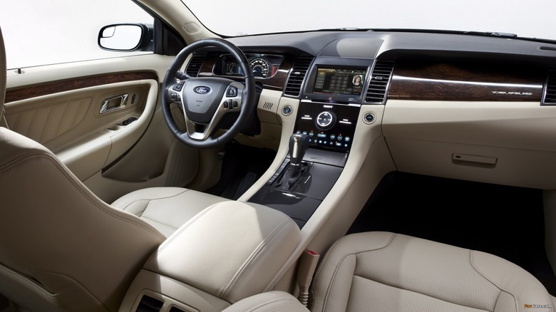 2010+ Ford Taurus. I had a 2012 for a few years and I loved the interior. The dashboard had a dual cowl design similar to the Mustang and the center console, radio and top of the dashboard all flowed together really smooth. I preferred the 2010-2012 as I thought the gauges, steering wheel and center stack all looked nicer. The interior reminded me of a cockpit.