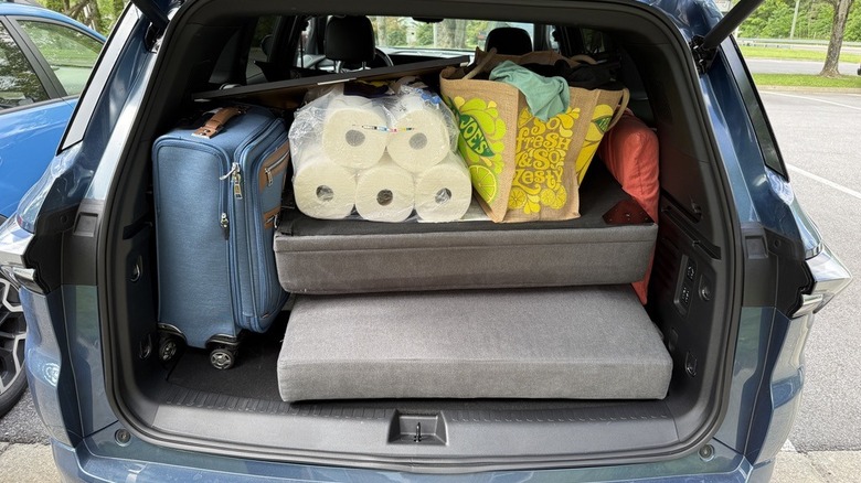 As you might expect, it's equally as good at carrying luggage and most of a college student's furniture. You see, along with attending the graduation ceremony, I had to bring a lot of his stuff back home since my family was going to run out of room in their cars. This was no problem for Enclave. With all seats up, the Enclave still has 22.9 cubic feet of trunk space. If that's not enough — which it wasn't for me — drop the second row to gain access to 57.1 cubic feet of room. If that still isn't enough room (which it wasn't), you can be like me and drop all five rear seats. That'll give you a gargantuan 97.5 cubic feet of cargo room. Sure, you can argue a minivan will have even more space, but there's no minivan with adaptive cruise control as good as this, so I'll trade some cubic feet for that.