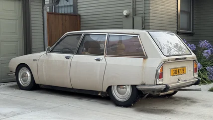I didn't want to trespass, so I only peeked at the rear and side of the timeworn wagon, but that was enough to make me smile and snap a few pictures. The initial excitement of stumbling across such a rare car paled in comparison to the feeling I got when I Googled the model, and found a Bring A Trailer ad for a 1973 Citroën GS 1220 Club that turned out to be this exact car.
