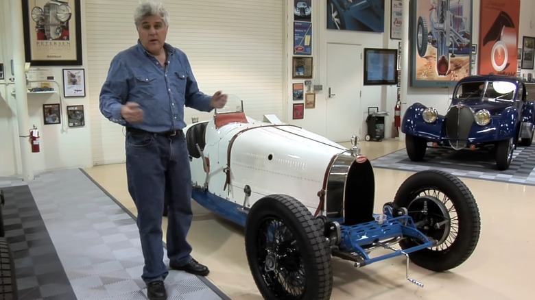 At almost 100 years old, it's not hard to believe the 1928 Bugatti Type 37 A in Jay Leno's extensive car collection is worth around a million bucks. Especially because the comedian can still take this well-built machine to the streets. The Bugatti Type 37 A was created for voiturette racing with a supercharged engine that jumps the horsepower 20 notches over what the original Type 37 model could accomplish. With speed capabilities of up to 122 mph, this car was built to move, and Leno claims his Type 37 A has done around 115 mph.