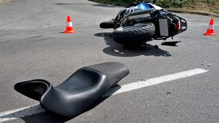 A motorcycle crash looks chaotic, but the underlying science is straightforward. Two wheels are just less stable than three or four, which means when traction is lost (from loose gravel, fuel spills, manhole covers, ice or snow, or even uneven pavement during construction), the bike can tip over almost instantly. Without gyroscopic force from forward motion, a motorcycle simply can't hold itself upright, and once a rider goes down, inertia takes over. The body keeps moving at the same speed the bike was traveling until something stops it: pavement, a guardrail, or another vehicle.