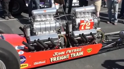 The heyday for the National Hot Rod Association's (NHRA) Top Gas dragster class was 1961 to 1971. Unlike their nitro-huffing counterparts in Top Fuel, Top Gas cars used regular old pump gas. Nitromethane makes crazy power thanks to its more thorough combustion (more on that later), so running gas was a severe handicap. To be competitive in the Top Gas class, you had to get creative. Lots of builders settled on two engines as the solution, but how do you get them to play nice with a single axle? You could do like Car and Driver did with its two-engined Honda CRX and just put a separate power train in the back, but that's not how Top Gas attacked the problem.