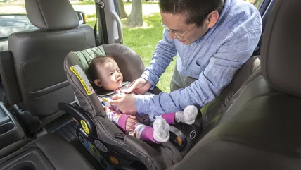 And snugly adjust their harness or seat belt, regardless of what type of car seat they're using. In a car seat with its own harness, make sure the harness is tight enough that you can't pinch or grab the belts around their collarbones. If your child is big enough to sit in a booster seat, make sure the seat belt is adjusted to cross their chest and sit close to their neck without contacting it. For more information on best practices to keep your child safe in the car, check out the IIHS child safety research website.