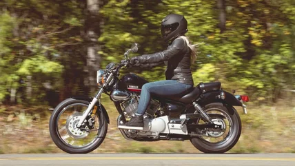Yamaha's entry-level cruiser is the V Star 250, which starts at $4,799 (plus an additional $600 destination fee) and touts several key features that could it one of the best new motorcycles for beginners. For example, the V Star comes with a wet weight (the bike's weight when its fluids are full) of about 324 pounds, which is nearly 220 pounds lighter than Yamaha's other current cruiser, the Bolt R-Spec. Furthermore, the V Star's seat measures a 27 inches off the ground, making it ideal for smaller or inexperienced riders.