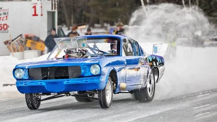Ice drags with studded tires. Insane 1/8th mile times out of muscle cars on frozen lakes.