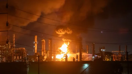 A massive fire erupted at a Chevron oil refinery that's about three miles south of Los Angeles International Airport in El Segundo, California Thursday night just after 9:30 p.m. The blaze was so bright and powerful that it lit up the night sky, and flames were visible from miles away. The city of El Segundo closed down nearby roads, and urged nearby residents to stay indoors and shut their windows. That shelter in place order was lifted at around 1 a.m. Friday morning, and the blaze is now fully contained, but not extinguished.