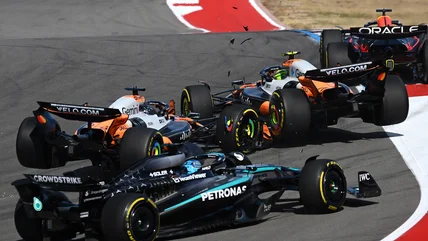 Despite Papaya Rules, the McLaren teammates have come to blows on track multiple times. Norris collided with Piastri while trying to pass him and crashed out of the Canadian Grand Prix in June. Earlier this month, Norris banged wheels with Piastri to pass him during the opening lap of the Singapore Grand Prix. The team said there would be repercussions for Norris's action, but Brown clarified in an F1 TV interview that it wouldn't be anything fans would see on track. The interview was on the grid in Austin, just minutes before the team's Turn 1 double DNF.